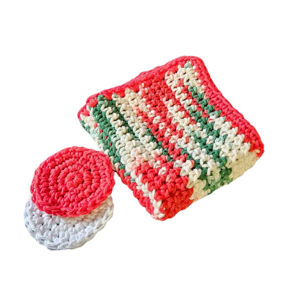 Pair a red-and-white striped cotton washcloth and face scrubbie with a bar of soap for a self-care gift that’s both beautiful and useful.
